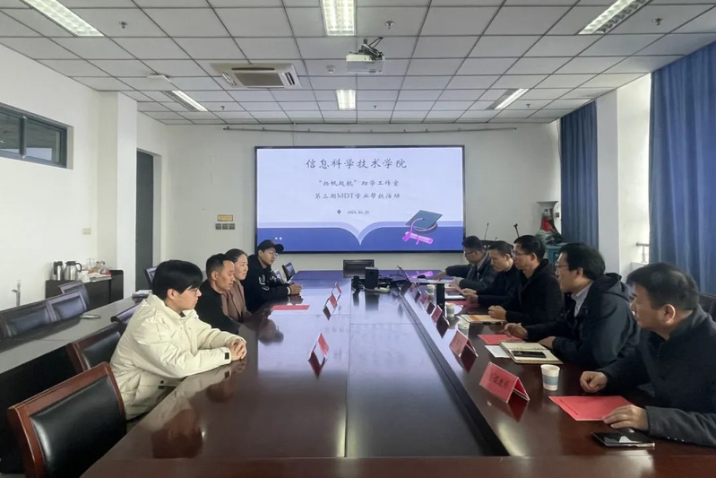 陈馥强介绍了“扬帆起航”助学工作室开展学生帮扶活动的具体方法,并强调MDT学业帮扶活动旨在通过任课教师、辅导员、班主任、学生骨干与家长的共同努力,实现全员全过程全方位育人,打破信息壁垒,切实解决学生学业困难问题。