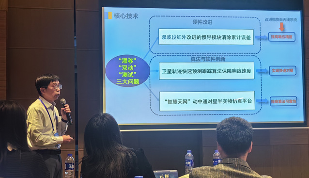 杨永杰教授在报告中指出,中轨卫星船载动中通系统依托于“智慧天网创新工程”(上海市科技专项工程2018-2024)以及空间网络实验创新平台(清华2030创新行动计划2023-2036)。他介绍了中轨卫星船载动中通系统的总体架构,提供了相控阵天线、抛物面天线等多种解决方案,提出了三大核心技术:双波段红外改进的惯导模块消除累计误差提高响应精度,卫星轨迹快速预测跟踪算法保障响应速度实现快速对星,“智慧天网”动中通对星半实物仿真平台提高算法可靠性。他强调,三大核心技术的创新,破除了抛物面动中通技术瓶颈,未来将进一步推进全海况全轨道仿真平台、深度学习搭建海天误差模型、轻量化相控阵天线、保障高通量卫星通信自主安全,推动新通信产业蓬勃发展,打造“空、天、地、海”一体化高质量信息网络服务体系。