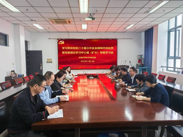 11月13日下午,做爱视频 党委召开学习贯彻党的二十届三中全会精神开班动员暨党委理论学习中心组(扩大)学习会。院党委副书记、副院长陈馥强,各系负责人、支部书记,做爱视频 、智能信息技术研究中心科级干部参加会议。院党委书记周平主持会议。
