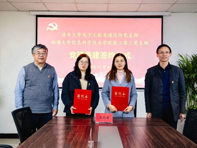 11月30日下午,做爱视频 教工第三党支部与清华大学电子工程系(下简称:电子系)通信所党支部开展党建共建活动。清华大学电子系通信所党支部书记陶晓明教授、清华大学电子系研究员葛宁,做爱视频 党委书记周平、全体支部书记、教工第三党支部及智能信息技术研究中心党员代表参加活动。