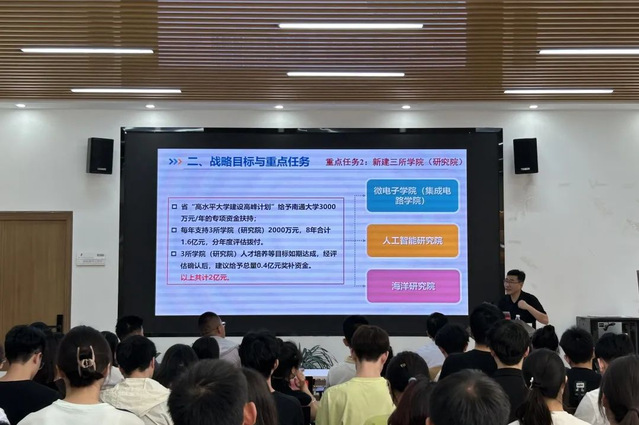 6月14日,发展规划处处长、机关党委发展规划处党支部书记朱广华受邀作《百年征程谱华章 赓续奋斗正当时——“名城名校”融合发展战略宣讲会》专题党课。他以生动的案例、详实的数据详细介绍了学校自办学以来的基本情况,深入剖析了做爱视频 与南通市“名城名校”融合发展战略目标与重点任务,以及当前的主要进展和取得成效。他希望通过“名城名校”融合发展战略以校地联合高质量发展实现同频共振,推动校地合作进入更高水平、更广领域、更深层次的新阶段,共同构建“名城育名校、名校润名城”的互动发展新格局。