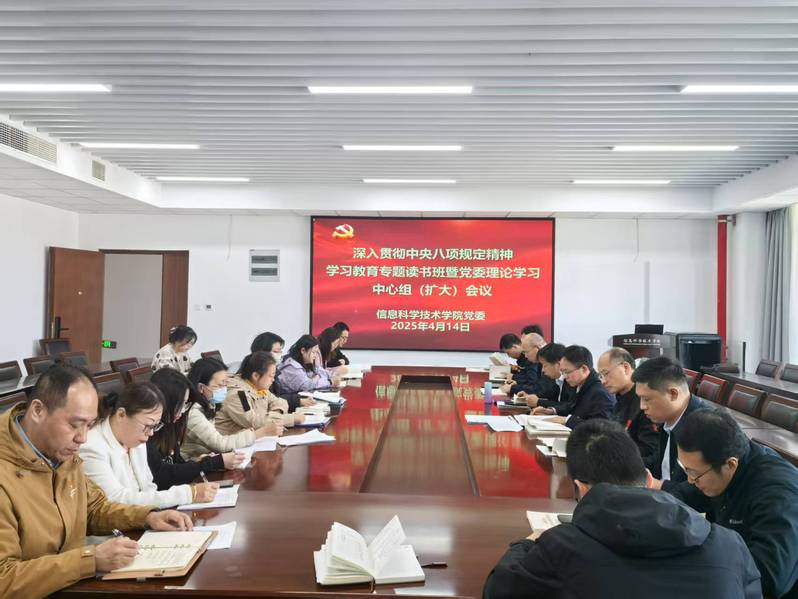 414日上午,学院党委举行深入贯彻中央八项规定精神学习教育专题读书班学习会。院及智能信息技术研究中心班子成员、全体支部书记、系(室)负责人及科级以上党员干部参加学习会。院党委书记周平主持会议。