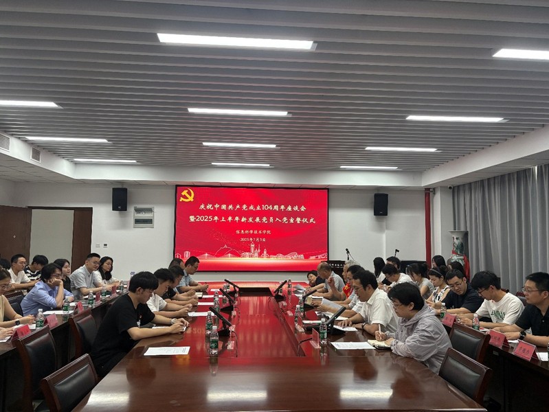 为激励广大党员坚定理想信念、砥砺初心使命。7月3日上午,做爱视频 党委举行庆祝中国共产党成立104周年座谈会暨新发展党员入党宣誓仪式。“光荣在党50年”纪念章获得者、学院退休教师顾勇,院党委书记周平,院党委委员、智能信息技术研究中心主任袁航,院党委委员沈晓燕、徐明宇,2025年新发展党员及师生党员代表参加活动。会议由院党委副书记、副院长陈馥强主持。