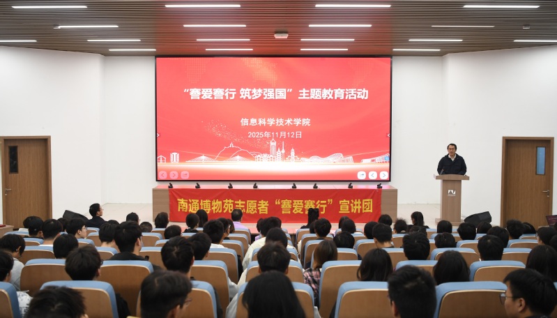 南通市优秀志愿者、南通博物苑十佳志愿者曹建清以《张謇与中国近代第一城》为题,生动讲述了张謇先生在兴办实业、教育与社会公益方面的卓越贡献,号召广大师生将爱国之情、报国之志融入学习科研与奋斗实践中。