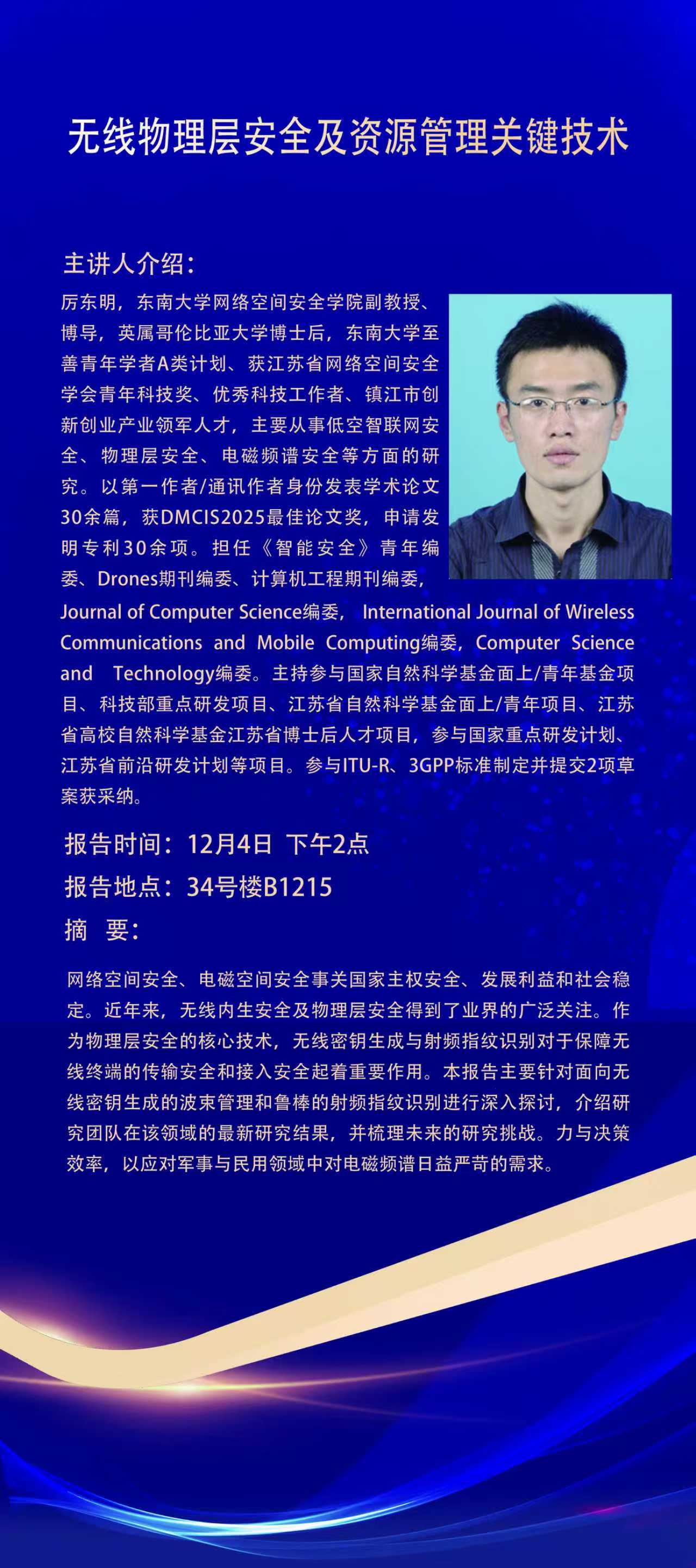 讲座预告:无线物理层安全及资源管理关键技术