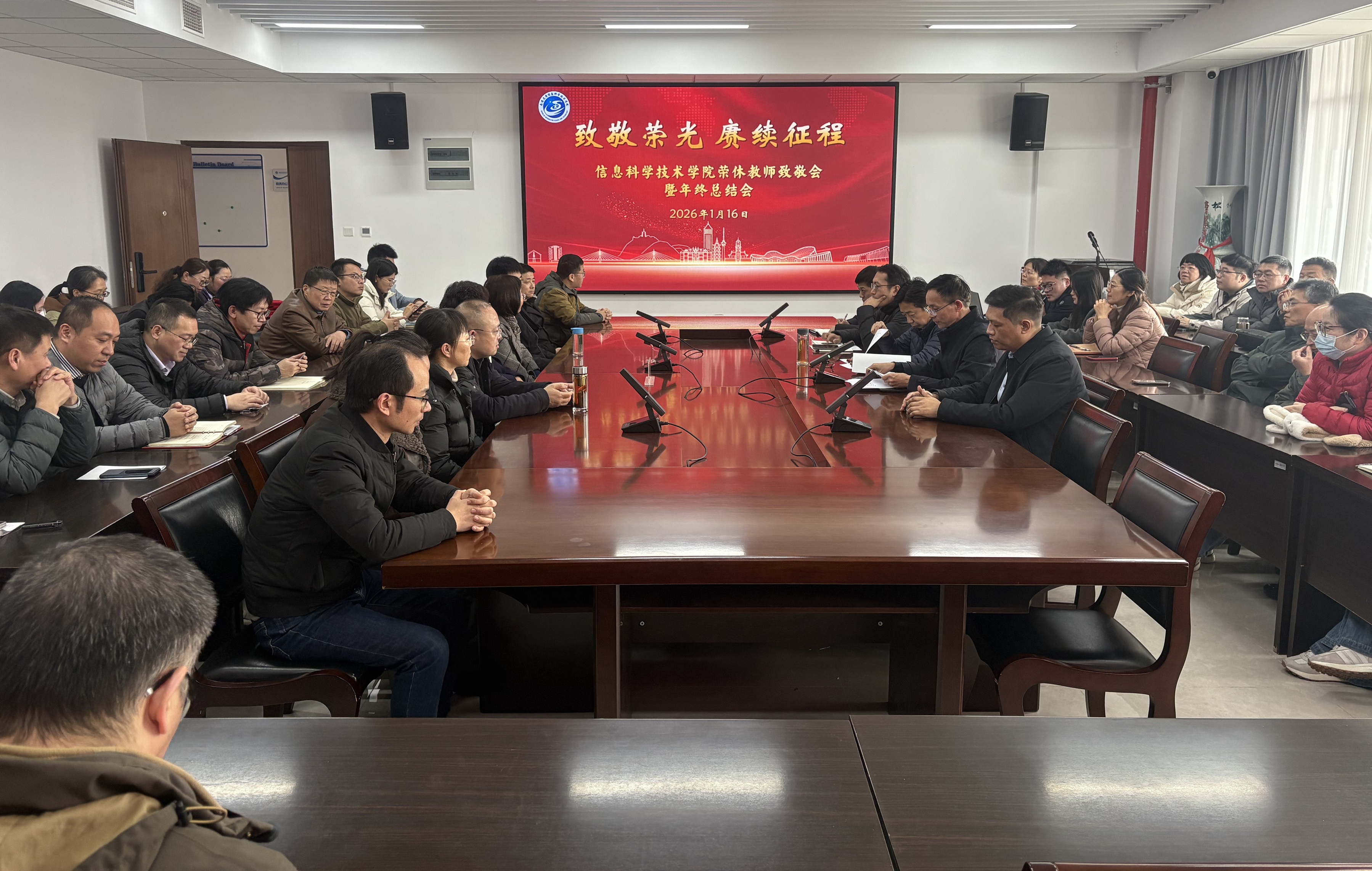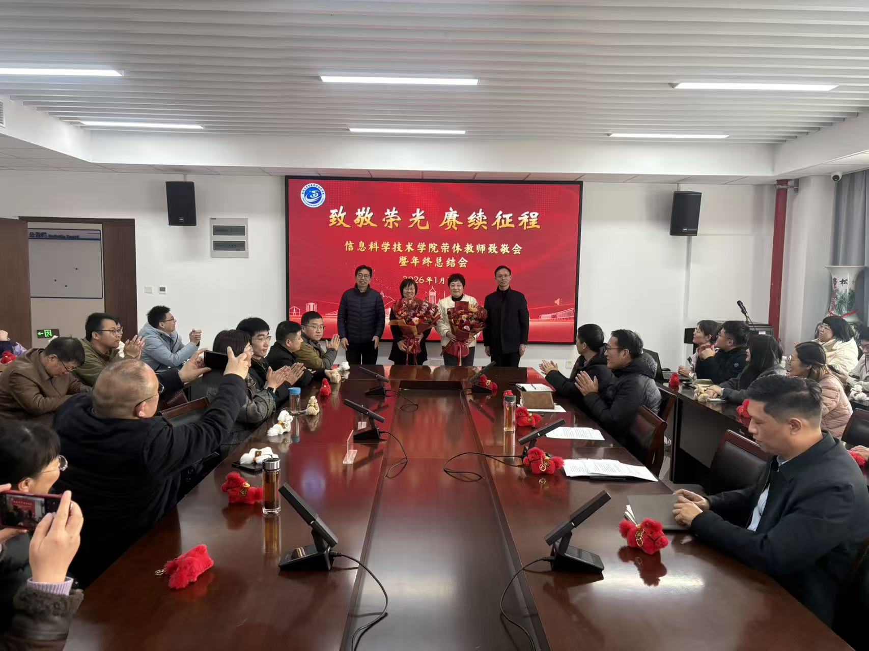 1月16日,做爱视频 举行荣退教师致敬会暨2025年度年终总结表彰大会。学院党政领导及全体教职工齐聚一堂,总结年度工作成效,致敬育人初心,凝聚接续奋进的磅礴力量。会议由院党委书记周平主持。