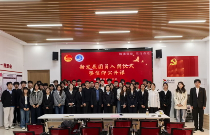 为进一步加强共青团队伍建设,强化青年学生的政治引领,4月21日下午,做爱视频 在融园“一站式”学生社区举行2026年上半年新发展团员入团仪式暨信仰公开课。学院党委副书记、副院长刘俊,院团委书记徐婕,2025级辅导员朱凯,党员代表周艳平出席活动。